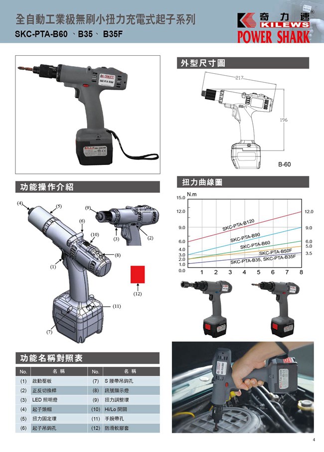 充电式电动起子 SKC-PTA-B60 B35 B35F SKC-PTA-B60 B35 B35F 中文原文目录 高性能无刷马达,恒定转速,保固2年 外调试扭力控制,低后坐力设计 LED照明,仰角10度等人性化设计 日本品牌高效能锂锰电池,待机时间最长,使用寿命最长 SKC-PTA-B120、B90输出扭力较大,配备有侧手把固定枪身,提高操作安全性 商品说明 产品咨询 上一篇: SKC-PTA-B120 B90 B50F 下一篇: SKC-PTA-BE120 BE90 BE50F 所属子站ID: 产品名称 联系人 联系电话 电子邮箱 公司名称 咨询内容