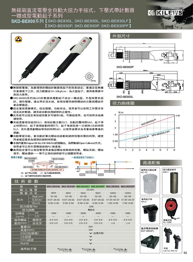 无刷大扭力电动起子 SKD-BE830L/P 850L/P 830LF/PF BE830 850中文目录 无碳刷电机,最适合在无尘作业环境下工作,扭力范围10~50kgf.cm,有中高扭力需要时使用 SKD-BE800系列为LED计数器与起子一体成型,操作简单,适用于流水作业 此系统可以设定5组有效组别,可单组使用也可多组循环使用,使用者可根据工作需求来设定计数器 商品说明 产品咨询 上一篇: SKD-BE800系列 下一篇: TW-269-3F 所属子站ID: 产品名称 联系人 联系电话 电子邮箱 公司名称 咨询内容
